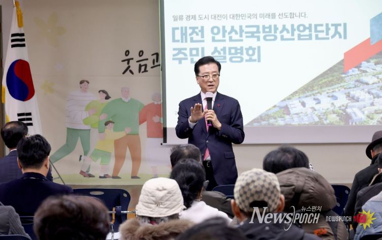 뉴스펀치 김길룡 기자 | 대전시의회 조원휘 의장은 16일 노은2동 행정복지센터에서 개최된 안산 국방산업단지 주민설명회에 참석해 국방산업 중심도시 대전을 이끌 안산 국방산업단지가 차질 없이 조성될 수 있도록 의회가 함께할 것을 약속했다.