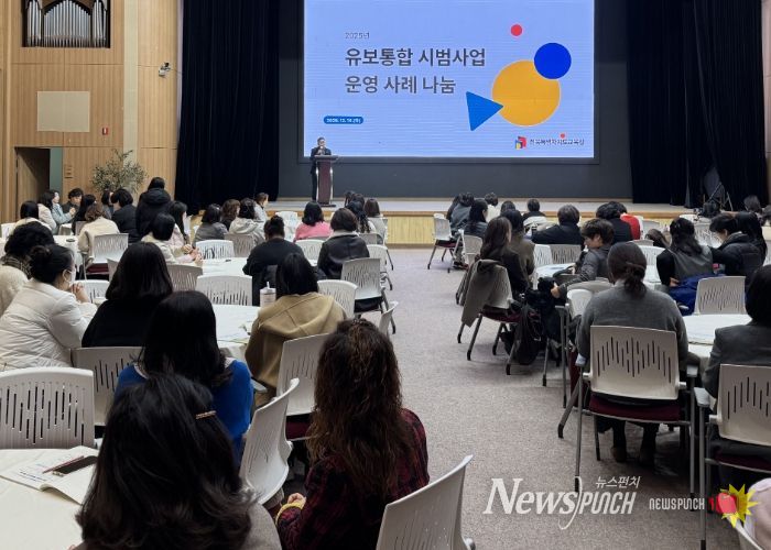 뉴스펀치 김길룡 기자 | 전북특별자치도교육청은 16일 치명자산성지 평화의전당 유항검홀에서 올해 진행된 유보통합 시범사업 성과를 공유하고, 2026년 사업 운영 방향을 모색하는 시간을 가졌다.