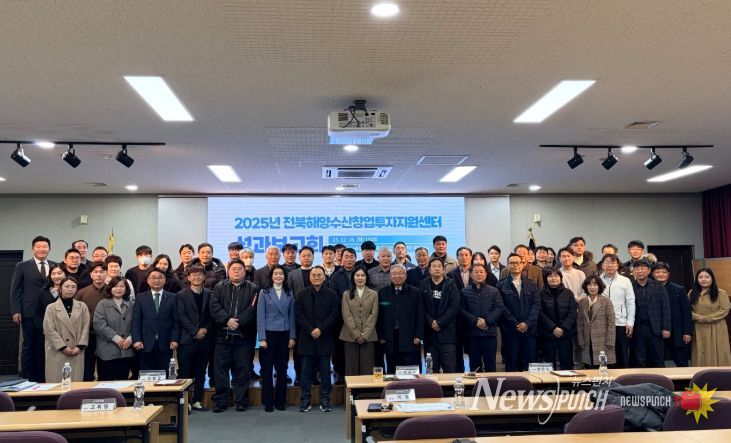 뉴스펀치 김길룡 기자 | 전북특별자치도와 전북바이오융합산업진흥원은 16일 전북바이오융합산업진흥원 비즈니스센터에서 ‘2025년 전북 해양수산창업투자지원센터 성과보고회’를 열고, 올해 사업 성과와 우수사례를 공유했다.
