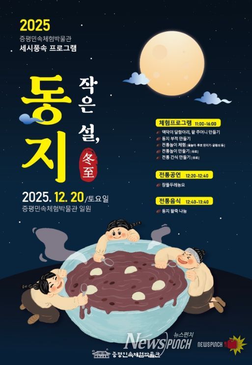 뉴스펀치 김길룡 기자 | 증평민속체험박물관이 오는 20일 오전 11시부터 박물관 일원에서 전통문화 체험 프로그램 ‘작은 설, 동지’를 운영한다.
