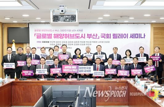 뉴스펀치 김길룡 기자 | 부산시는 오늘(17일) 오후 1시 30분 국회의원회관 제2소회의실에서 '글로벌 해양허브도시 부산' 국회 릴레이 세미나 2회차를 열고, '글로벌 해양허브도시 부산' 조성을 위한 공간 및 인프라 혁신 전략에 대해 논의한다고 밝혔다.