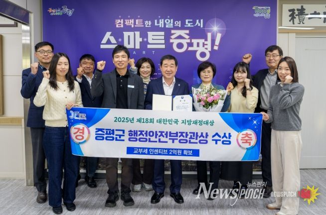 뉴스펀치 김길룡 기자 | 충북 증평군이 행정안전부가 주관하는 ‘2025년 제18회 대한민국 지방재정대상’에서 우수사례로 선정돼 도내 유일하게 행정안전부장관상 수상과 함께 특별 교부세 2억 원을 확보했다.