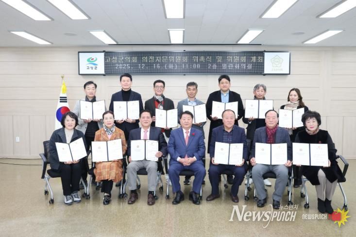 뉴스펀치 김길룡 기자 | 고성군의회는 12월 16일 의회 열린회의실에서 의정자문위원 위촉식 및 위원회를 개최하고 의정자문위원회 출범을 공식화했다.