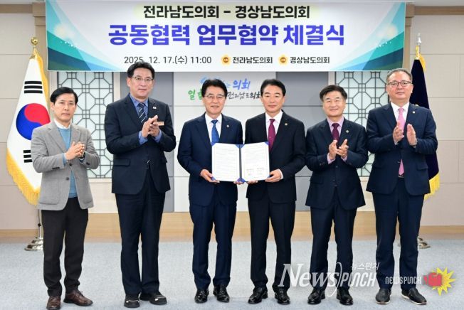 뉴스펀치 김길룡 기자 | 경상남도의회와 전라남도의회는 12월 17일 전라남도의회에서 '우주항공복합도시 건설 및 지원에 관한 특별법'의 조속한 제정을 촉구하기 위한 공동협력 업무협약을 체결하고, 우주항공산업 발전을 위한 지방의회 차원의 공동 대응에 나섰다.
