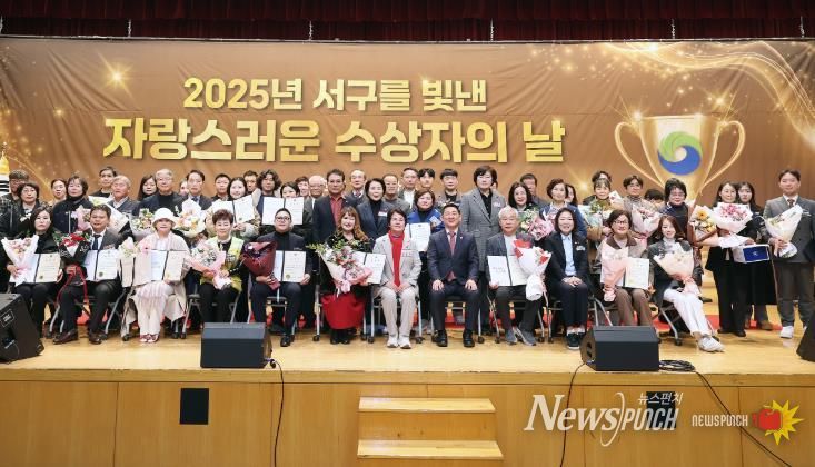 뉴스펀치 김길룡 기자 | 대전 서구는 17일 구청 구봉산홀에서 한 해 동안 지역사회 각 분야에서 헌신하며 서구 발전에 기여한 구민들의 공로를 기리는 ‘2025년 서구를 빛낸 자랑스러운 수상자의 날’ 행사를 개최했다.