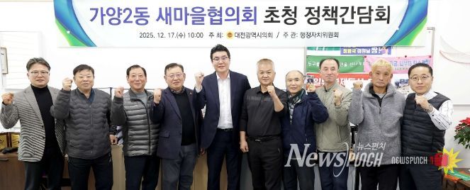 뉴스펀치 김길룡 기자 | 대전시의회는 17일 대전시의회 행정자치위원장실에서 정명국 의원(국민의힘, 동구 3) 주재로 가양2동 새마을협회의회 초청 정책간담회를 개최했다.