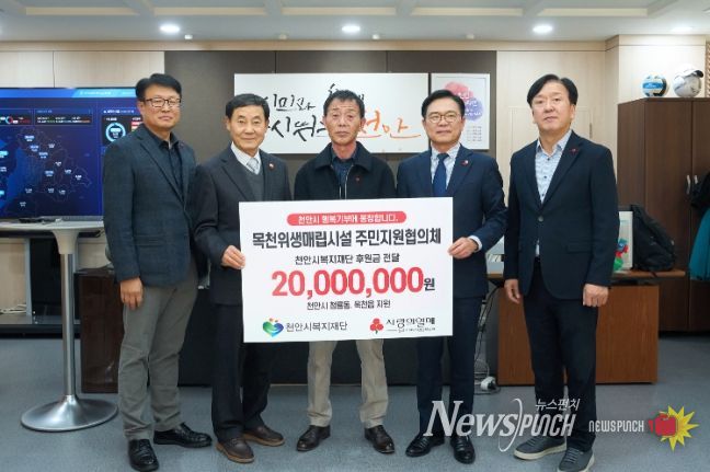 뉴스펀치 김길룡 기자 | 천안시는 17일 목천위생매립시설 주민지원협의체가 복지 사각지대에 놓인 취약계층을 위해 후원금 2,000만 원을 천안시복지재단에 전달했다고 밝혔다.