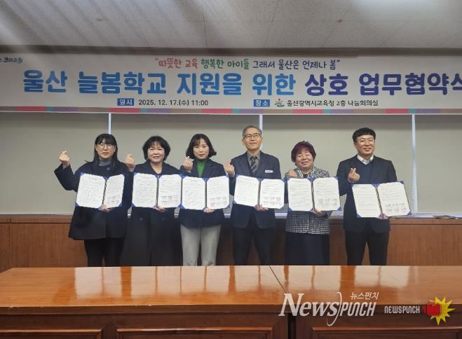 울산교육청은 지난 17일 나눔회의실에서 울산 지역 ‘권역별 시니어클럽’과 늘봄학교의 안전한 운영과 학생 참여 지원을 내용으로 하는 업무협약을 했다.