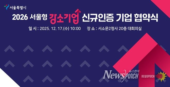 서울시는 지난 9월 ‘2026년 서울형 강소기업’으로 신규 인증한 48개사와 청년 정규직 채용 확대 및 일·생활 균형이 가능한 근무환경 조성을 약속하는 '2026년 서울형 강소기업 신규 인증 협약식'을 12월 17일(수) 서울시청 서소문2청사에서 개최했다고 밝혔다.