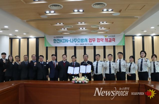 뉴스펀치 김윤걸 기자 | 나주소방서는 17일 한전KDN 본사에서 지역 공공안전 강화를 위해 업무협약(MOU)을 체결했다.
