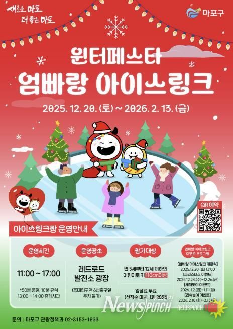 뉴스펀치 김완규 기자 | 마포구는 겨울을 맞아 레드로드 발전소 광장에 ‘윈터페스타 엄빠랑 아이스링크’를 조성하고 12월 20일 개장한다.