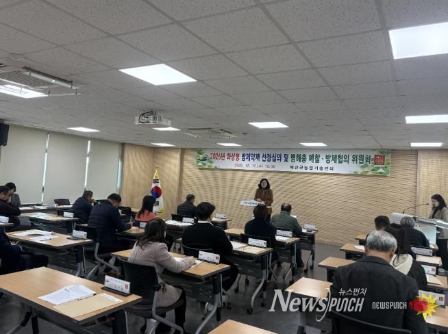 뉴스펀치 김길룡 기자 | 예산군농업기술센터는 식물방역법상 법정 관리병해인 과수화상병의 사전 차단을 위해 지난 17일 ‘2026년 과수화상병 방제약제 선정 심의 및 병해충 예찰·방제협의위원회’를 개최했다고 밝혔다.