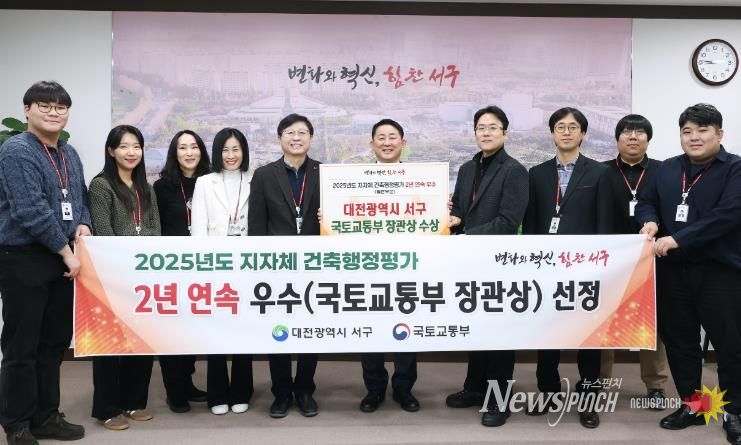 뉴스펀치 김길룡 기자 | 대전 서구는 국토교통부가 실시한 ‘2025년도 건축 행정 평가’에서 우수 지방자치단체로 선정됐다고 18일 전했다.