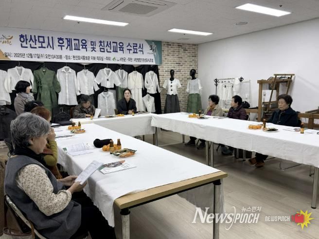 뉴스펀치 김길룡 기자 | 서천군은 지난 17일 한산모시홍보관에서 ‘2025년도 한산모시 후계인력 육성교육 및 전문 침선교육’ 수료식을 개최했다고 밝혔다.