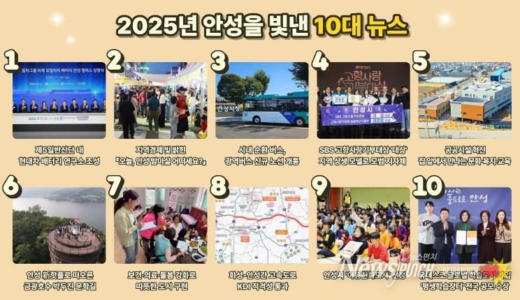 뉴스펀치 김길룡 기자 | 안성시는 올 한 해 추진한 주요 사업과 성과를 토대로 시민 대상 설문조사를 거쳐 2025년을 빛낸 10대 뉴스를 선정했다고 밝혔다.