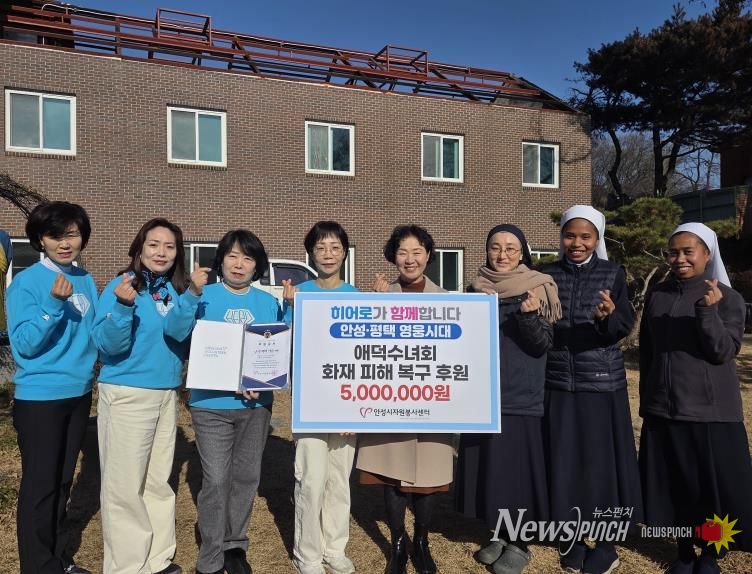 후원금 전달식은 화재 피해가 발생한 미리내성요셉애덕수녀회에서 진행됐으며, 안성·평택 영웅시대 회원들은 갑작스러운 화재로 어려움을 겪고 있는 이웃들의 일상 회복을 돕고자 십시일반 정성을 모았다.