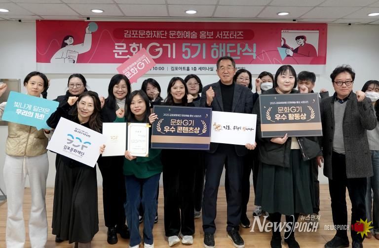 뉴스펀치 김길룡 기자 | (재)김포문화재단은 지난 13일 김포아트홀 세미나실에서 ‘김포문화재단 문화예술 홍보서포터즈 문화G기 5기 해단식’을 개최하고, 9개월간 활동을 이어온 서포터즈들의 공식 활동을 마무리했다고 밝혔다.