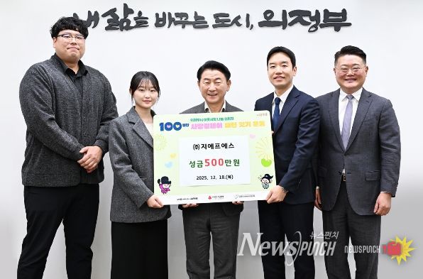 뉴스펀치 김길룡 기자 | 의정부시는 12월 18일 관내 기업 ㈜지에프에스가 지역사회 나눔 실천의 일환으로 성금 500만 원을 기탁했다고 밝혔다.