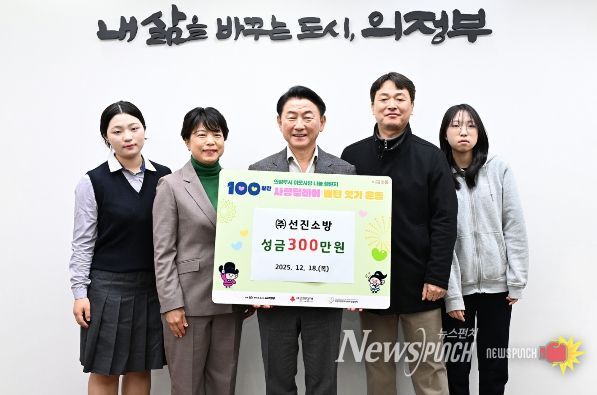 뉴스펀치 김길룡 기자 | 의정부시는 12월 18일 ㈜선진소방이 ‘100일간 사랑릴레이 배턴 잇기’에 동참해 지역 내 취약계층 지원을 위한 성금 300만 원을 기탁했다고 밝혔다.