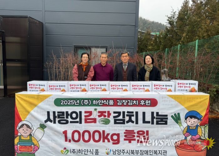 뉴스펀치 김길룡 기자 | 남양주시는 17일 남양주시북부장애인복지관에서 ㈜하얀식품(대표 장유라)의 후원으로 ‘사랑의 김장김치 전달식’을 개최하고, 지역 내 취약계층 장애인 가정에 김장김치 1,000kg을 개최했다고 밝혔다.