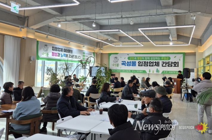 뉴스펀치 김길룡 기자 | 전남 곡성군은 지난 18일 관내 소재한 디톡스테라피거점센터 테라밸리에서 2025년 곡성몰 입점업체 간담회를 개최하고 한 해 동안 곡성몰의 성장에 함께해 온 입점업체들의 노고에 감사를 전하며 의미 있는 한 해의 마무리를 함께했다고 19일 밝혔다.