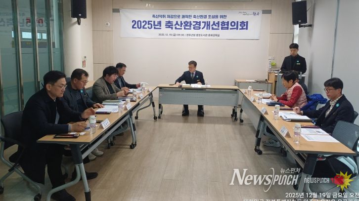 뉴스펀치 정홍균 기자 | 완주군이 지난 19일 군청에서 ‘2025년 축사환경개선협의회’를 열고, 경축순환 활성화와 축산악취 저감 방안을 논의했다.