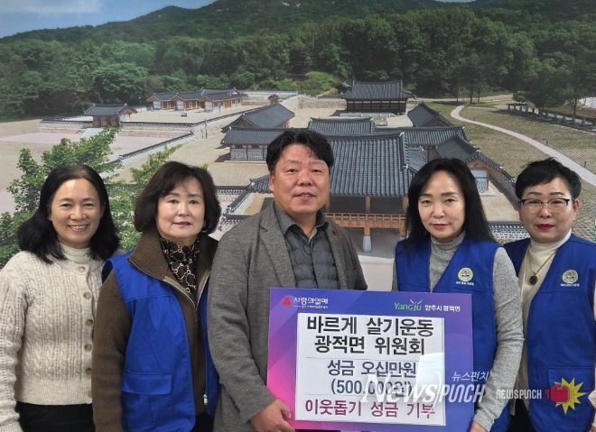 뉴스펀치 김길룡 기자 | 바르게살기운동 광적면위원회가 지난 17일 관내 취약계층을 돕기 위해 광적면행정복지센터에 성금 50만 원을 기부했다.