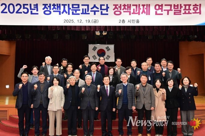 뉴스펀치 김길룡 기자 | 진주시는 19일 진주시청 시민홀에서 조규일 시장을 비롯해 정책자문교수단, 공무원 등 120여 명이 참석한 가운데 ‘2025년도 정책자문교수단 정책과제 연구발표회’를 개최했다.