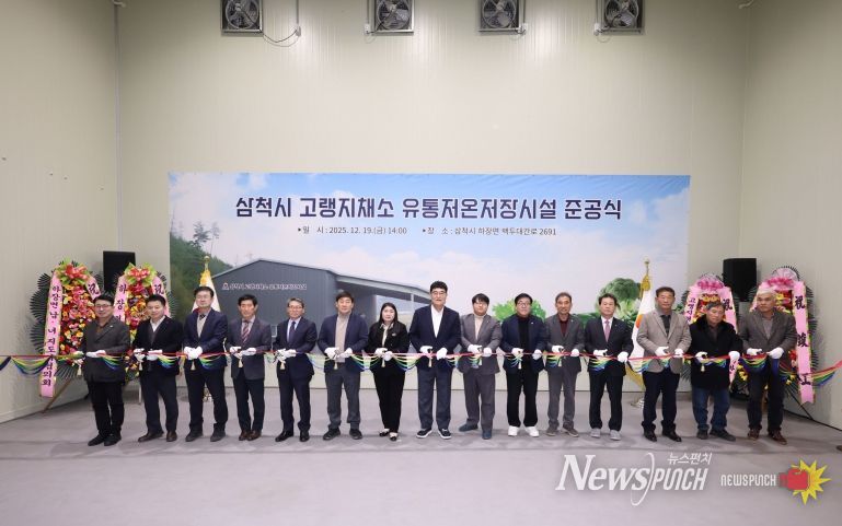 뉴스펀치 김길룡 기자 | 삼척시는 고랭지채소 농산물의 안정적인 수급과 유통 기반을 마련하기 위해 조성한 ‘삼척시 고랭지채소 유통저온저장시설’의 준공식을 12월 19일 하장면 일원에서 개최했다.