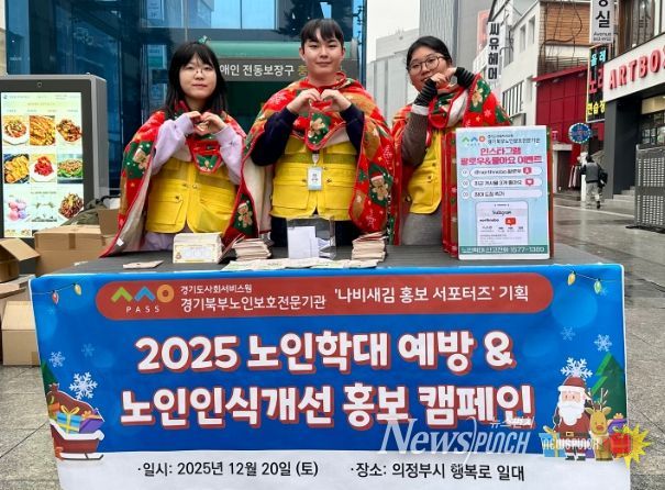 뉴스펀치 김길룡 기자 | 경기도사회서비스원 경기북부노인보호전문기관(관장 장동현)은 12월 20일, 의정부시 행복로 일대에서 의정부시민을 대상으로 노인학대 예방 및 노인 인식 개선을 위해 시민참여형 홍보 캠페인을 진행했다고 밝혔다.
