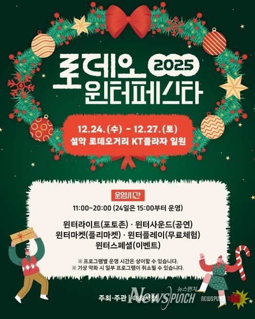 뉴스펀치 김길룡 기자 | 속초시가 12월 24일부터 27일까지 설악로데오거리 KT플라자 일원에서 ‘2025 로데오 윈터 페스타’를 개최한다.
