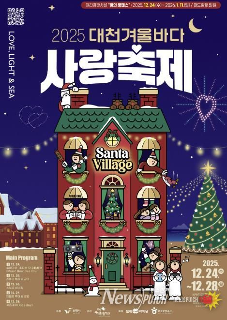 축제는 오는 24일 머드광장에서 열리는 점등식으로 막을 연다. 핸드벨 타종과 동시에 산타빌리지 콘셉트 조명이 일제히 점등되며 광장 전체가 겨울 마을로 변신한다. 보령머드테마파크 외벽과 노을·분수광장에도 크리스마스 조형물, 트리, 전통등 등이 설치돼 축제 기간 내내 ‘크리스마스 빛의 거리’가 조성된다.