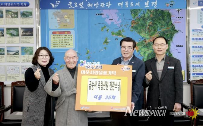 뉴스펀치 김길룡 기자 | 보령시는 지난 19일 시장실에서 청소영농조합법인과 삽시도 금송사 죽림선원으로부터 총 1,610만 원 상당의 후원물품을 기부받았다고 밝혔다.