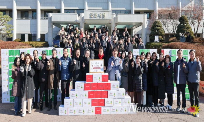 뉴스펀치 김길룡 기자 | 군포시는 지난 18일 안양시 동안구에 위치한 새중앙교회로 부터 크리스마스를 맞아 일상생활에서 꼭 필요한 기본 식료품으로 구성한 꾸러미‘사랑의 천사박스’1,004상자를 기탁받았다고 밝혔다.