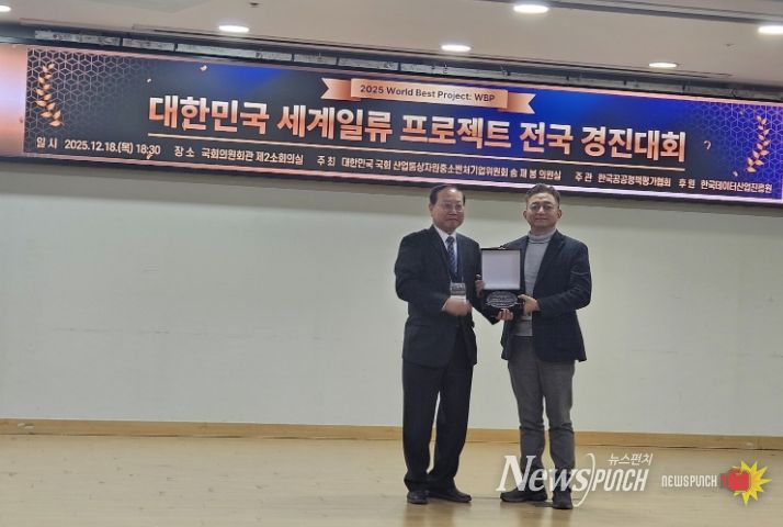 뉴스펀치 김길룡 기자 | 부여군은 국회의원회관에서 열린 ‘대한민국 세계일류 프로젝트 전국 경진대회’에서 농림수산·식품산업 분야 우수상을 받았다고 22일 밝혔다.