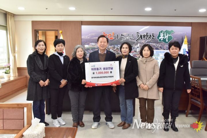 뉴스펀치 김길룡 기자 | 한국여성농업인봉화군연합회(약칭:한여농, 회장 이미자)는 지난 15일 봉화군청 군수실을 방문해 이웃돕기 성금 100만 원을 기탁하며‘희망2026 나눔캠페인’에 동참했다.