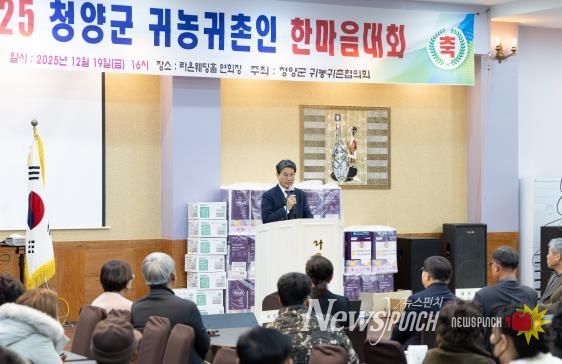 뉴스펀치 김길룡 기자 | 귀농·귀촌인의 안정적인 지역 정착을 도모하고, 지역 주민과의 화합과 소통을 강화하기 위한 ‘2025 청양군 귀농·귀촌인 한마음 대회’가 지난 19일 청양읍 라온웨딩홀에서 성황리에 열렸다.