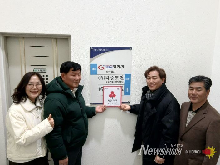 뉴스펀치 정홍균 기자 | 부안군 부안읍 지역사회보장협의체(공동위원장 김정)는 지난 19일 다승토건을 방문해 착한가게로 선정하고 현판 전달식을 가졌다.
