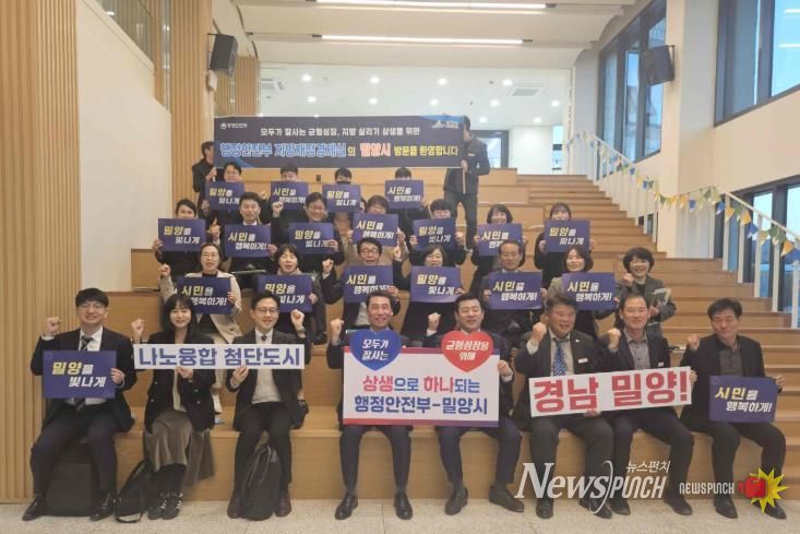 뉴스펀치 김길룡 기자 | 밀양시는 행정안전부 주관의 ‘지방살리기 상생 자매결연 우수사례’ 공모에서 우수상에 선정돼 특별교부세 8천만원을 확보했다.