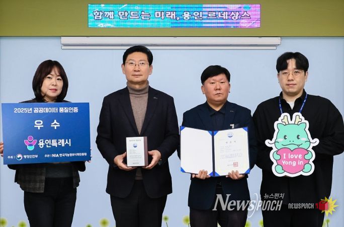뉴스펀치 김길룡 기자 | 용인특례시는 19일 행정안전부가 주관한 ‘2025년 공공데이터 품질인증’에서 우수기관으로 선정돼 지방자치단체 가운데 최초로 공공데이터 품질인증을 획득했다고 22일 밝혔다.