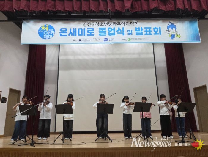 뉴스펀치 김길룡 기자 | (사)한국청소년육성회 진천지구회(회장 송대현)가 운영하는 진천군청소년방과후아카데미 ‘온새미로’는 지난 19일 진천군청소년수련관에서 제18회 졸업식과 발표회를 개최했다.