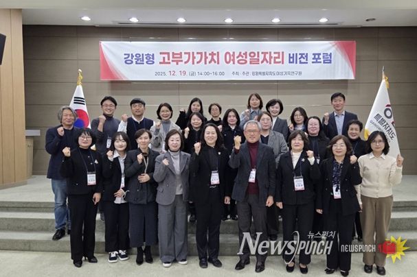 뉴스펀치 김길룡 기자 | 강원특별자치도 여성가족연구원은 12월 19일 강원특별자치도여성가족연구원 강당에서 2025 강원여성가족포럼Ⅴ '강원형 고부가가치 여성일자리 비전 포럼'을 개최했다.
