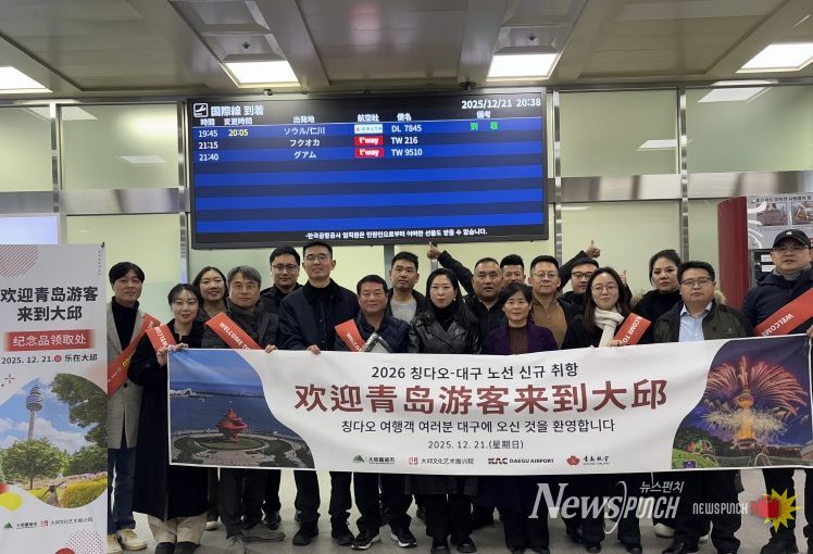 뉴스펀치 조평훈 기자 | 대구광역시와 대구문화예술진흥원 관광본부는 대구국제공항에서 ‘칭다오-대구’ 신규 노선 취항을 맞아 중국인 관광객을 위한 환영 행사를 마련하고 본격적인 맞이에 돌입했다.