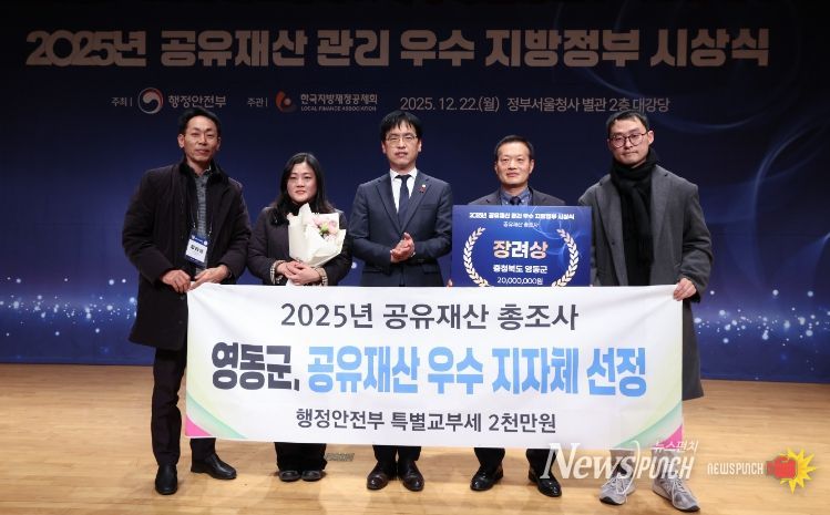 뉴스펀치 김길룡 기자 | 행정안전부 주관 2025년 공유재산 총조사에서 영동군이 우수 지자체에 선정되어, 특별교부세 2,000만 원을 확보했다고 23일 밝혔다.
