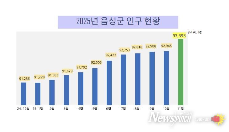 뉴스펀치 김길룡 기자 | 음성군이 지방 소멸의 위기 속에서도 가파른 인구 성장세를 보이고 있다.