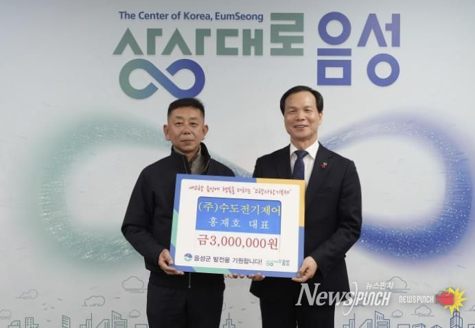뉴스펀치 김길룡 기자 | ㈜수도전기제어 홍재호 대표가 지난 22일 음성군에 고향사랑기부금 300만 원을 전달했다.