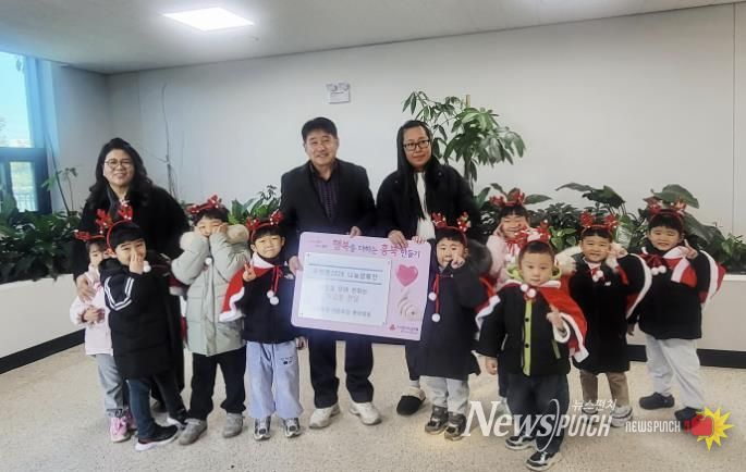특히 이날 성금 전달식에는 모아미래 어린이집 푸른하늘반 원아 10명이 산타 의상과 머리띠를 착용하고 참여해 훈훈한 분위기를 자아냈다. 아이들은 작은 손으로 모은 정성을 전하며 나눔의 소중함을 몸소 실천했다.