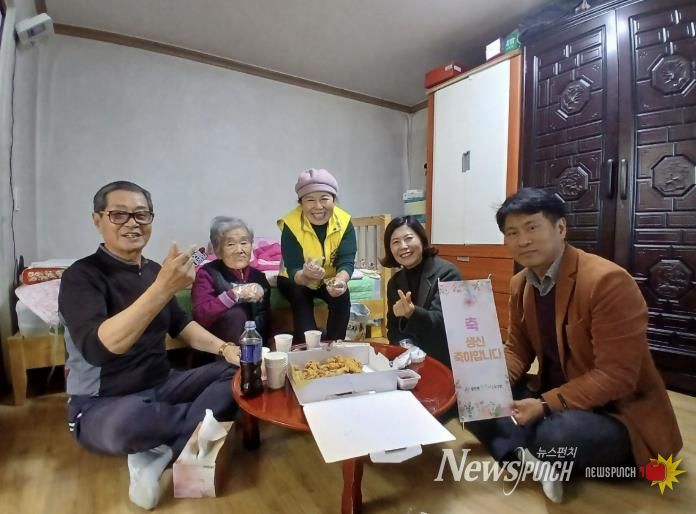뉴스펀치 김길룡 기자 | 아산시 영인면 행복키움추진단은 지난 22일, 마을 이장과 함께 생신을 맞은 어르신 가정을 직접 방문해 생신 상차림과 떡케이크, 선물 등을 전달하며 생신잔치를 마련했다.