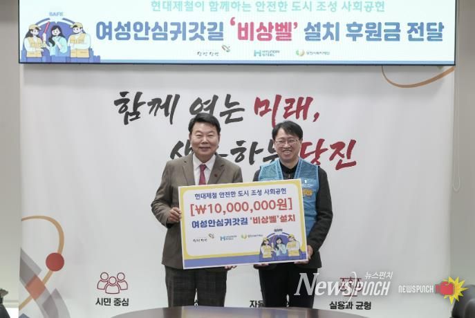 이번 전달식에서 현대제철(주)은 1000만 원을 후원했으며, 후원금은 읍면동 수요조사와 민관경 합동 모니터링을 통해 선정된 장소에 비상벨, 로고젝터 등의 안전시설을 설치하는 데 사용할 예정이다.