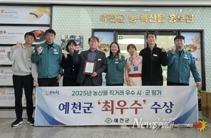 뉴스펀치 김길룡 기자 | 예천군은 경북도가 실시한 ‘2025년 농산물 직거래 우수시군 평가’에서 지난해 ‘우수상’ 수상에 이어 올해에는 ‘최우수상’을 수상하는 성과를 거뒀다고 24일 밝혔다.